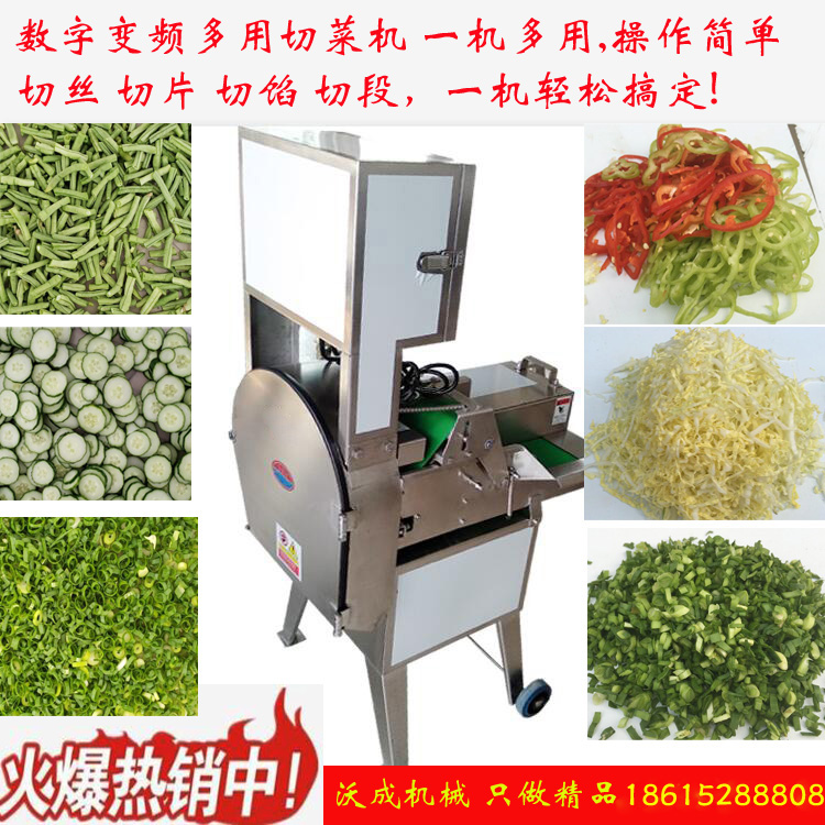 数字变频多用切菜机 可根茎类蔬菜切片(刀片或刀盘),可叶菜类蔬菜切丝切馅(白菜韭菜包心菜等)整机全钢,数字变频调控。